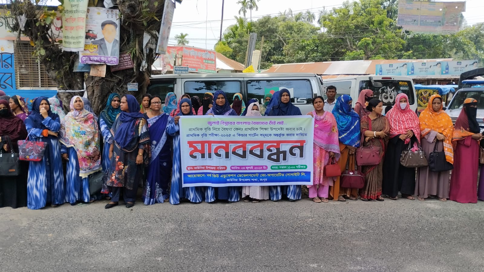রংপুরের কাউনিয়া পঞ্চম শ্রেণির প্রাথমিক বৃত্তি পরীক্ষায় কিন্ডারগার্টেন ও বেসরকারি শিক্ষা প্রতিষ্ঠানের শিক্ষার্থীদের অংশ গ্রহণের সুযোগ ও প্রাথমিক শিক্ষা অধিদপ্তর কর্তৃক প্রকাশিত পত্র বাতিলের দাবিতে মানববন্ধন ও স্মারকলিপি প্রদান করেছেন শিক্ষক-অভিভাবক ও শিক্ষার্থীরা।